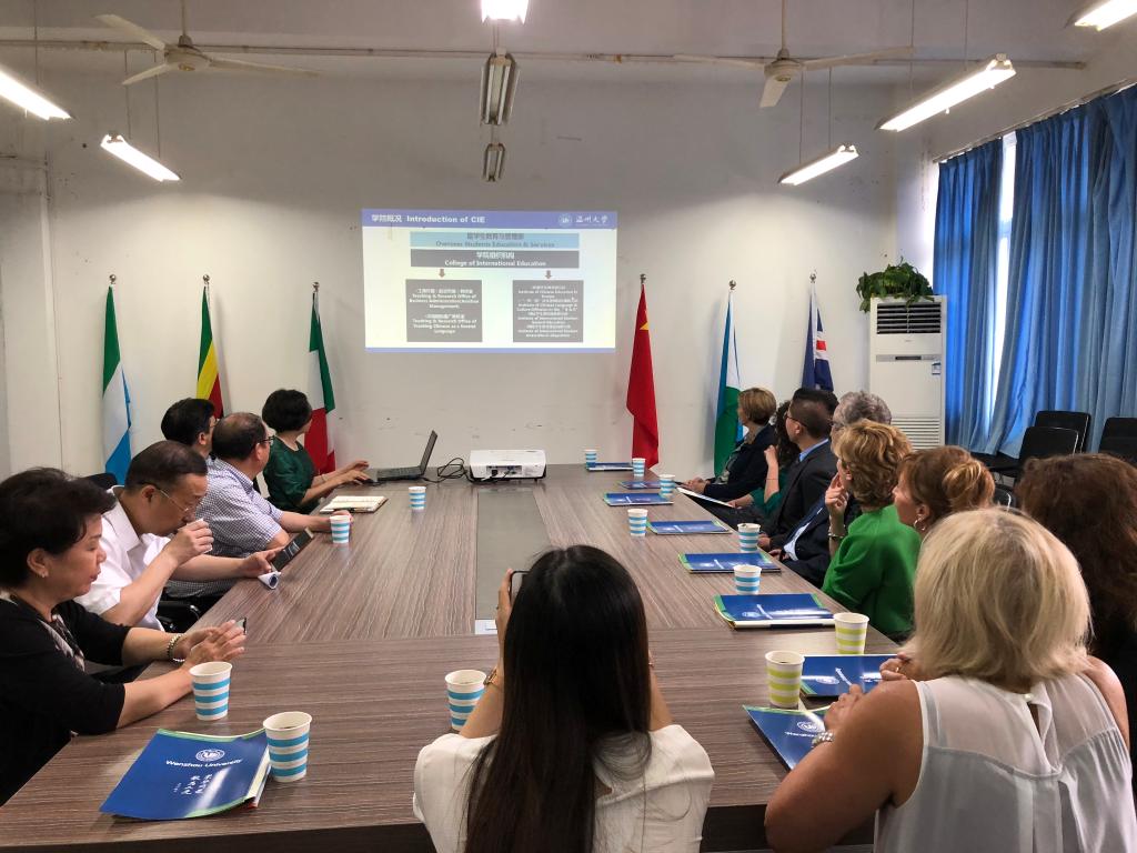 院长兼书记叶苗教授首先对意大利访问团来访表示热烈欢迎,简要介绍了温州大学的国际学生教育和博彩平台排名
