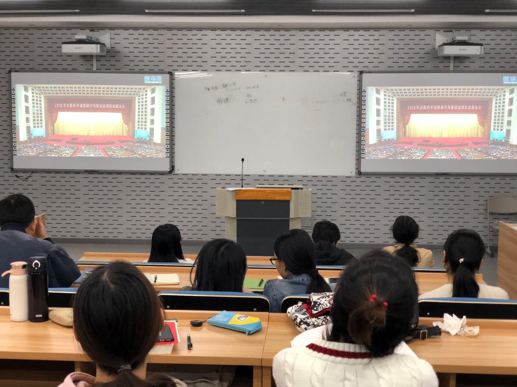 在北校区三号楼201教室组织全体师生观看了由中国科学技术协会、教育部、中国科博彩平台排名