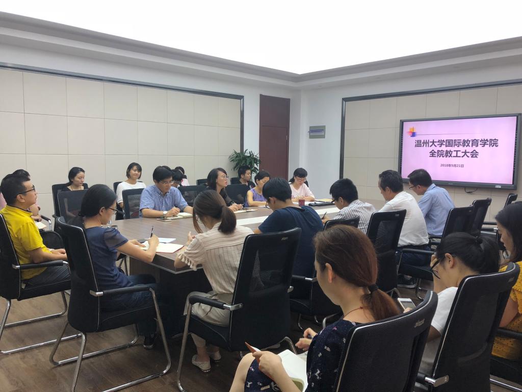 大家庭。同时,叶院长向全体教工传达了暑期干部理论学习会议主要精神和我校思政工作会议精神,她提出,要建立健全机制,优化协同联动,并结合国际化教育与管理的实际,对国际化办学、国际化师资建设、中外学生交互成长等提出了新的要求。