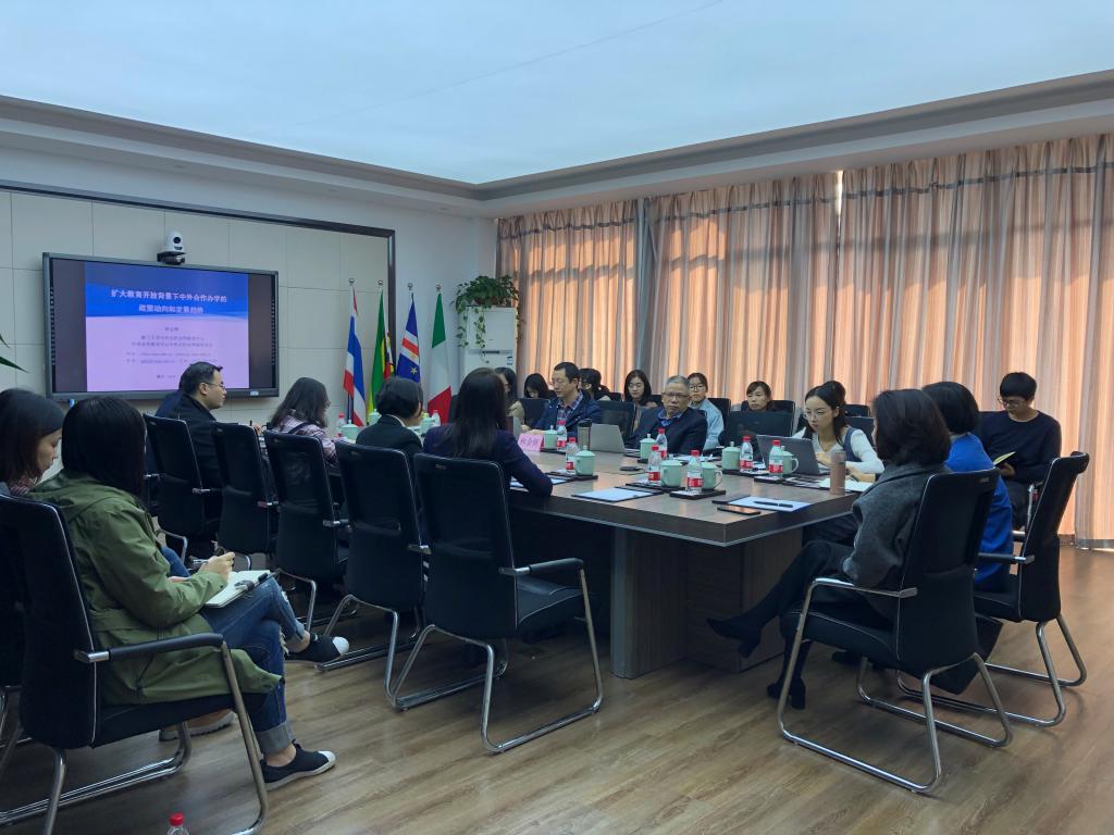 ,以《扩大教育开放背景下中外合作办学的政策走向和发展趋势》为题开展讲座,国际处、团委、人文社科处、意大利分校、瓯江博彩平台排名