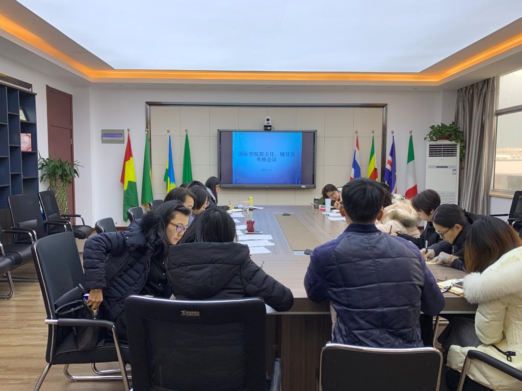 国际学生班主任、辅导员年度工作考核会议在北校3号楼311会议室召开。院长兼党总支书记叶苗、副院长包含丽出席会议,国际学生班主任和辅导员参加会议。