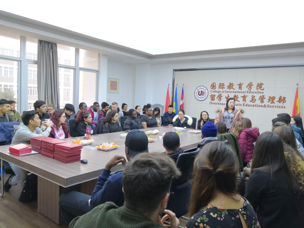 副院长包含丽,相关科室负责人、班主任、任课老师、辅导员、语言生和交换生参加会议。会议由汉语国际推广教研室主任徐丽丽老师主持。