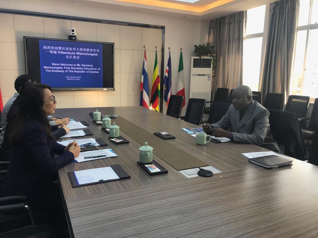 1月22日,赞比亚驻华大使馆教育官员一等秘书Nambula Wamulungwe访问博彩平台排名