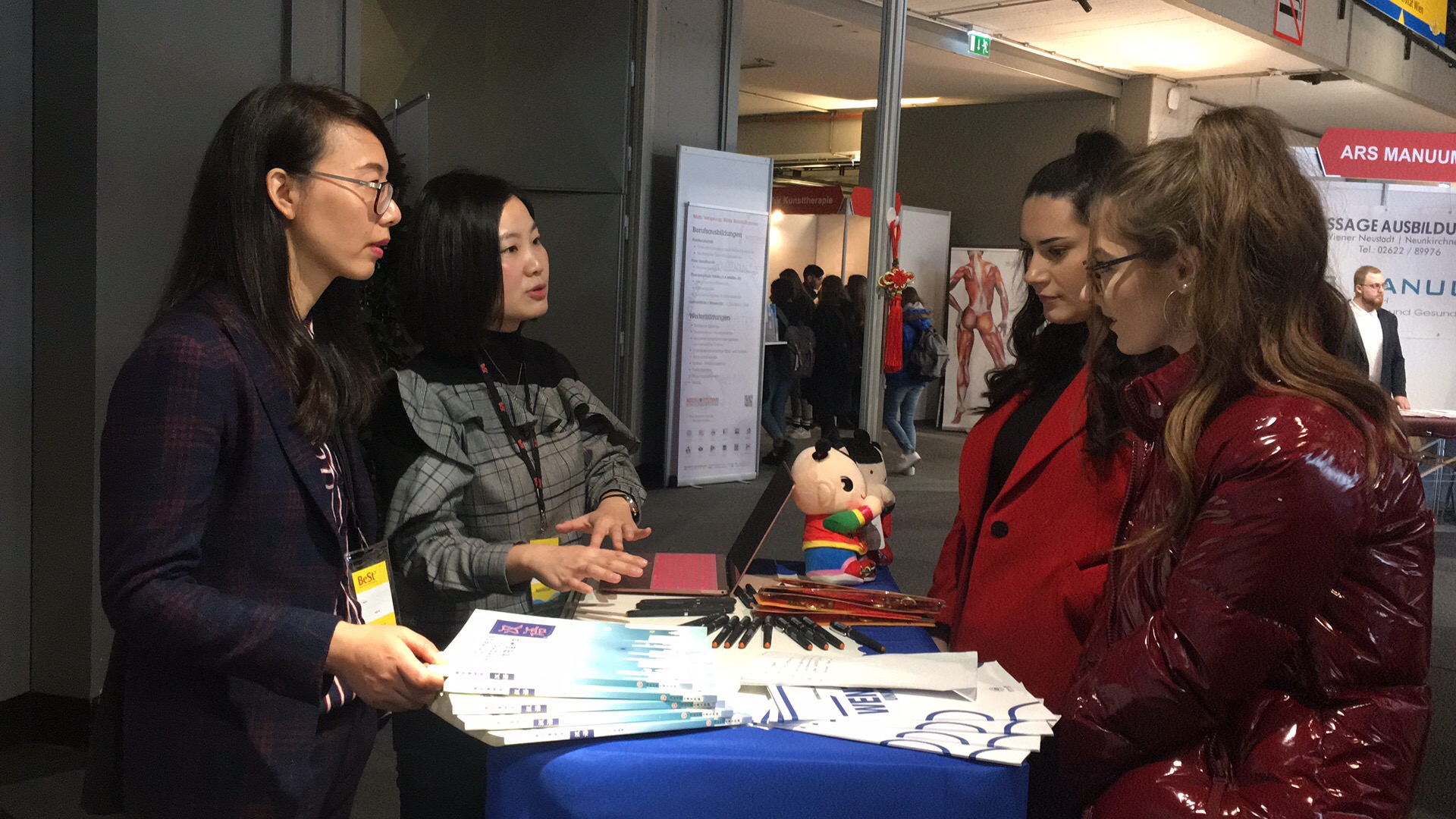 3月7日-9日,代表团参与了Best高等教育博览会。该博览会由奥地利教育部主办,人力资源部协办,中欧人文经贸合作促进会承办。该博览会每年一届,已成功举办32年,旨在为高中生进一步学习、工作提供信息和渠道。全奥地利高中生都会由学校组织参加该博览会,在学生、家长中有很大的影响力。中山大学,天津大学、暨南大学,北京语言大学、温州大学,以及河南省教育厅、贵州省教育厅带领的多所高校在内的22所中国高校以及包括日本、德国等诸多知名高校参与本次展览会。展览会期间,多名学生和家长到展会咨询,代表团向其详细介绍温州大学研究生、本科生、短期语言项目以及中国寻根之旅夏令营等项目情况,并发放招生宣传资料和纪念品,多数学生对短期培训项目表示了兴趣,填写了留学意向。值得一提的是,展览会期间,温州大学通过中国留学推介会向当地学生通过主题报告的形式介绍了温州大学的各类招生情况。