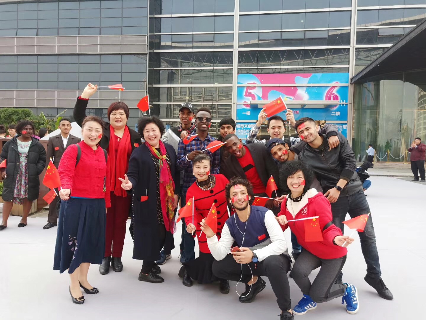 开幕式上,我校来自尼日利亚、韩国、埃及等国家的20名国际学生参加了全市500多人的合唱团,共同唱响《我和我的祖国》,以快闪表演方式向新中国成立70周年献礼,表达对中国的热爱与祝福。国际学生们手拿小国旗,与中国学生、市民一起深情歌唱“我和我的祖国,一刻也不能分割”。来自乌兹别克斯坦的JURABOEV OTABEK说,“能够参与这项活动和温州人一起庆祝新中国成立70周年是非常幸运的一件事,我能感受到温州人具有的坚韧精神和家国情怀,我深深为之感动。”
