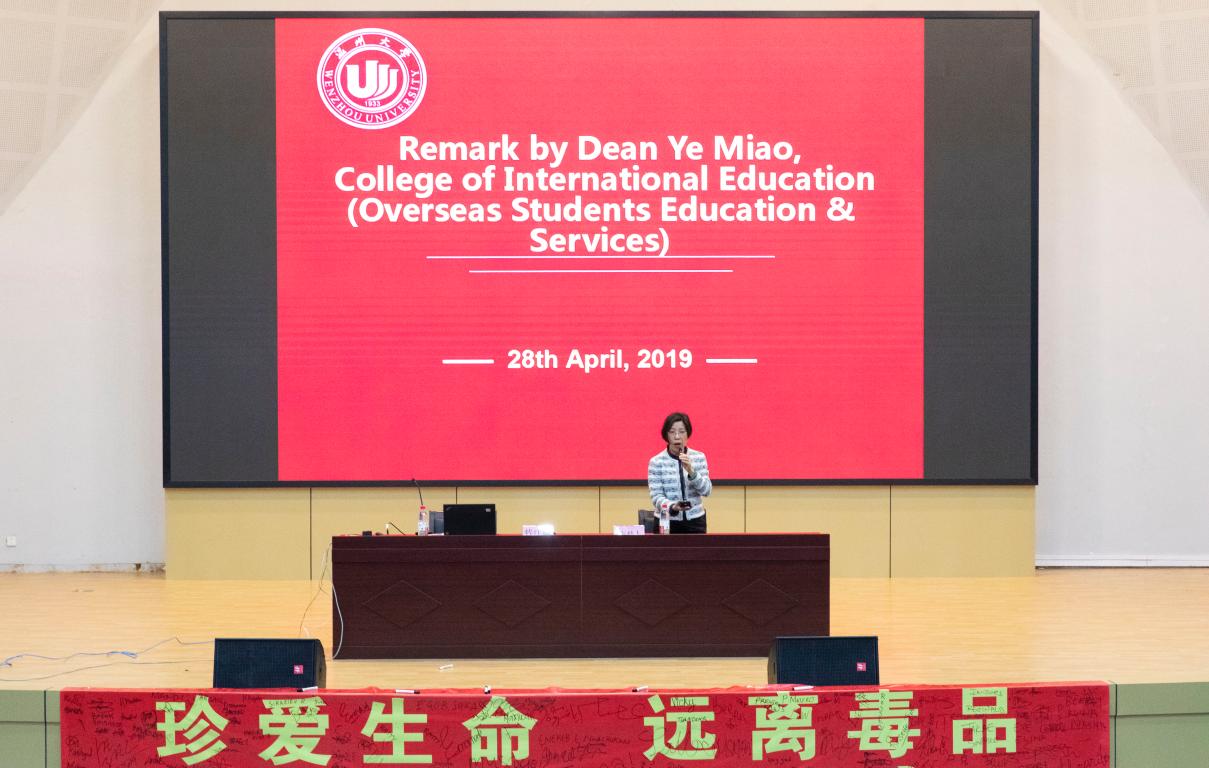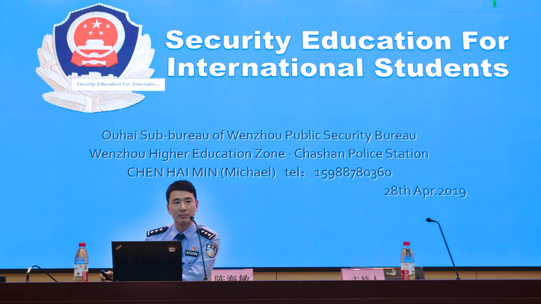为了做好中国法律法规和校纪校规的宣传,将法律法规教育贯穿国际学生培养全过程,提高国际学生的法律法规意识,4月28日,我校在南校区9号楼一楼报告厅召开全体国际学生安全教育大会。党委委员、副校长钱强,茶山派出所副所长黄龙武、警官陈海敏,校保卫处处长孙安梭,后勤集团公司副总经理张雪萍,国际博彩平台排名