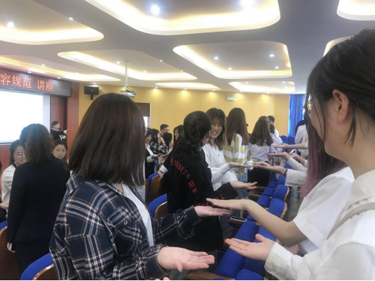 特邀国家A级形象礼仪讲师傅玲丹老师为航空管理专业的学生开展面向职场的专业礼仪培训。傅玲丹老师温婉端庄,庄重却不失亲和,从她身上仿佛能感受到礼仪文化最大程度的流淌于身。这样一位温文尔雅的老师所带来的礼仪讲座,深深感染了现场的每一位同学,使大家更积极地参与到现场互动中。