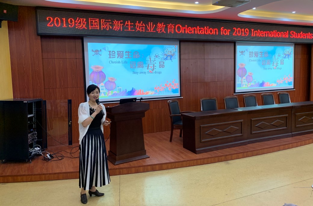 将禁毒教育内容编入留学生始业教育教学大纲,通过讲座、测试向学生讲解禁毒知识,包括如何识别伪装毒品、毒品的危害等,强调中国法律对待毒品“零容忍”,一经发现学生有任何涉毒行为,中国法律和学校规定绝不姑息纵容。