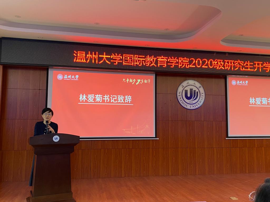 及汉语国际教育硕士点的发展历程及办学理念。接着,叶院长向同学们介绍了瓯越文化的历史脉络及当今的传承与发展。最后,她着重向同学们介绍了敢为天下先的温州人精神,她希望同学们秉承“求学问是,敢为人选的”校训精神,脚踏实地、开拓进取,勇攀科研高峰。