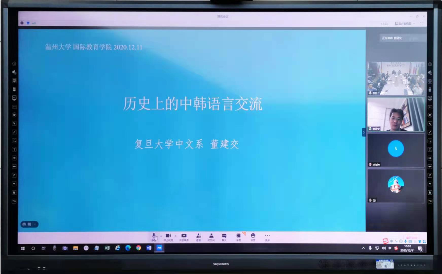 2020年12月11日上午10:00,复旦大学中文系董建交教授通过腾讯会议给我们带来了题为《历史上的中韩语言交流》的线上讲座。十大博彩平台排名网站