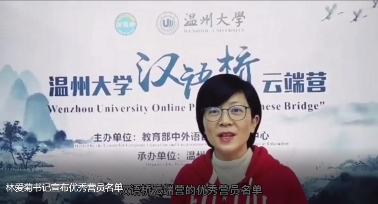 叶苗院长在结营仪式上致辞。她表示营员们的中文水平令人惊叹,作业都很有创意,她希望营员们能够加深对中国、对温州、对汉语的了解,建立起与温州的情缘,成为能讲中国温州故事的人,成为中泰文化交流的“桥”,欢迎营员们来到温州和温州大学学习!
