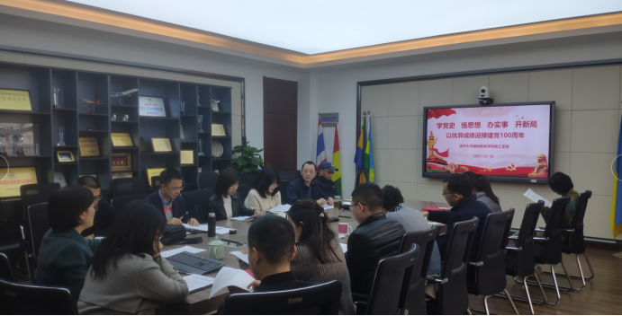 教工党支部召开党史学习教育动员大会,深入学习贯彻落实习近平总书记在党史学习教育动员大会上的重要讲话精神,全体教工党员参会,党总支书记林爱菊主持。