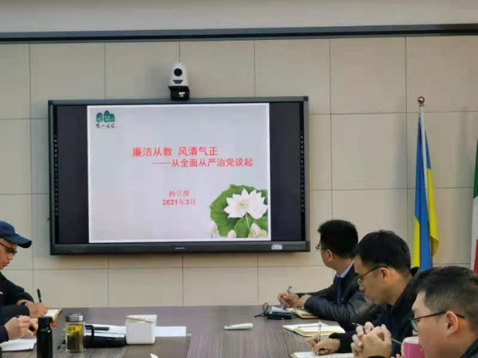 全体教工在311会议室开展教工理论学习会,主题是“廉洁从教、风清气正 ——从全面从严治党谈起”,纪委监察室副书记杨立淮主讲。