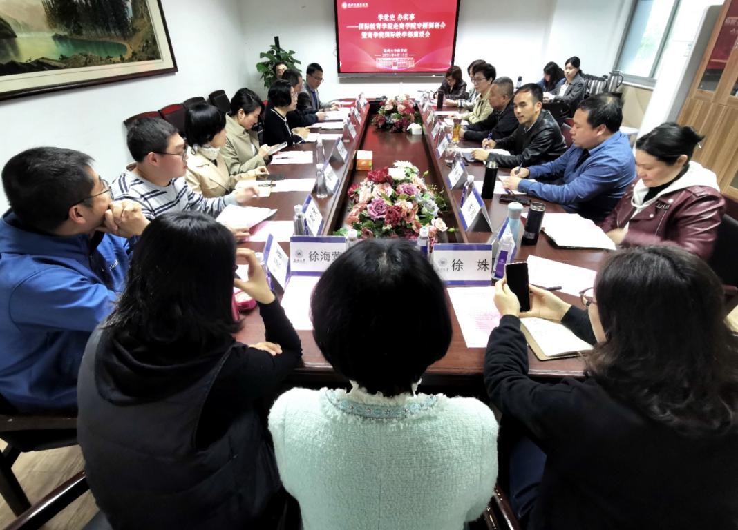 院长王宗正、副书记杨振海、院院长周湖勇、国际教学秘书胡亚玲、留学生辅导员白昌科等人参加了交流座谈。双方就留学生欠费问题、实践教学问题、同质化管理、新增国际化专业等方面展开讨论。