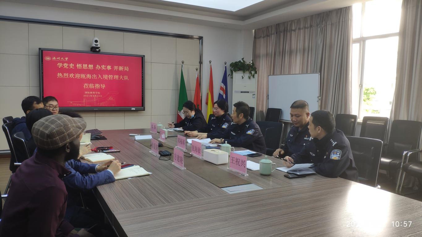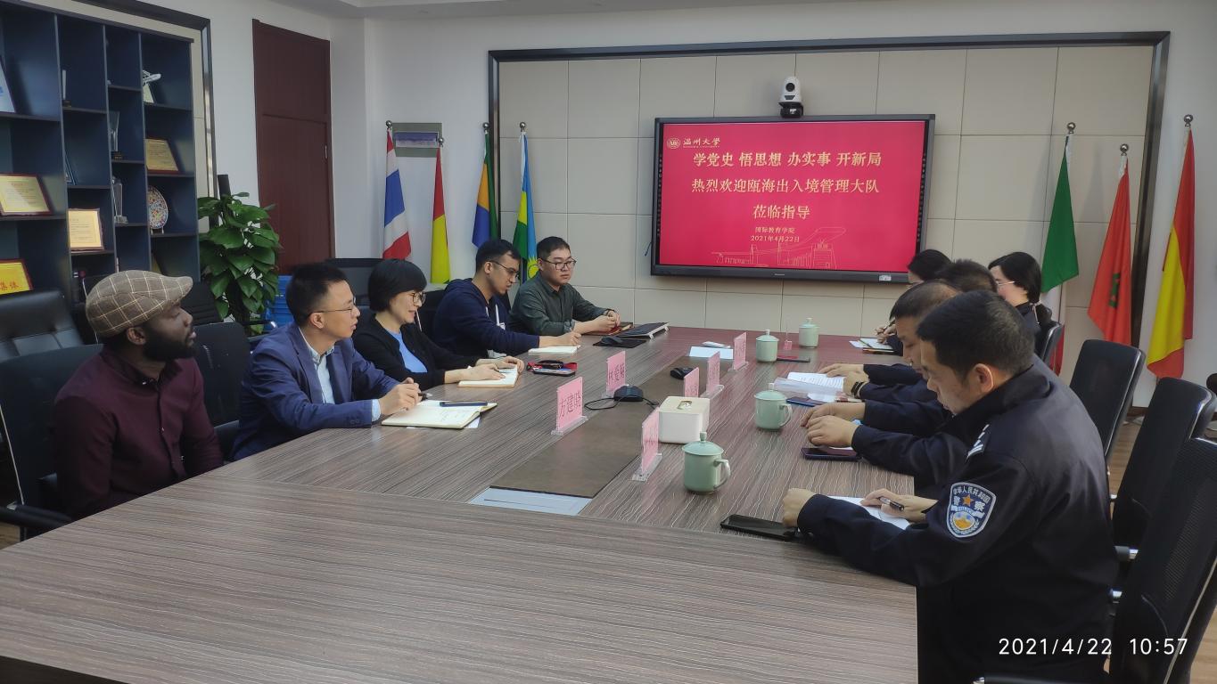 的细致工作,并表示瓯海公安将持续做好温州大学留学生管理的后盾支持,他希望警校双方提高站位,携手努力,共同压实责任,落实管理措施,梳理安全管控风险点。