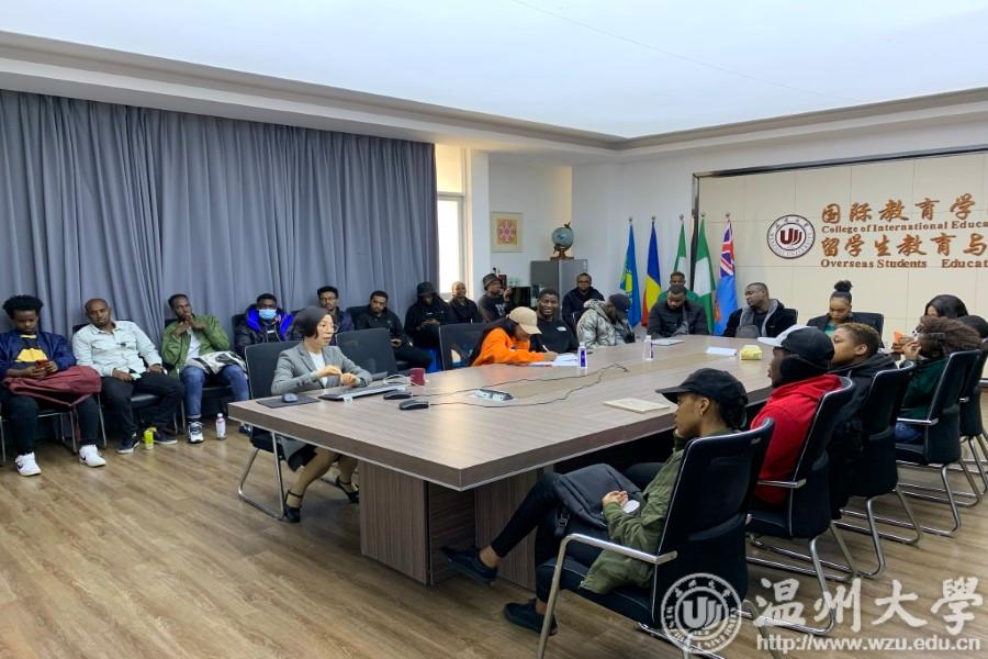 叶苗院长对来自尼日利亚、坦桑尼亚、巴基斯坦等国的国际学生新生表示了热烈的欢迎和由衷的祝贺。她向同学们介绍了温州的悠久历史和学校的基本情况,阐述了“一带一路”的理念和意义,勉励同学们在学好汉语和专业知识的同时,全面客观地了解中国和温州,成为文化交流和友谊沟通的使者。