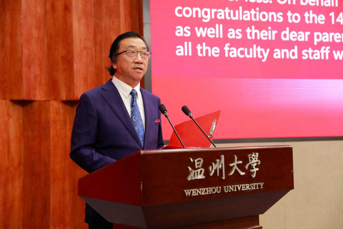 两位毕业生家长代表,也通过视频,给远在万里的孩子送上祝福,感谢中国、感谢温州大学。祝贺他们圆满完成学业,走向新的人生历程,希望他们将来为祖国建功立业。