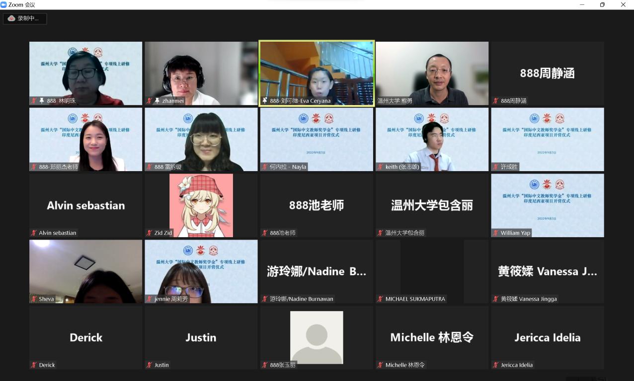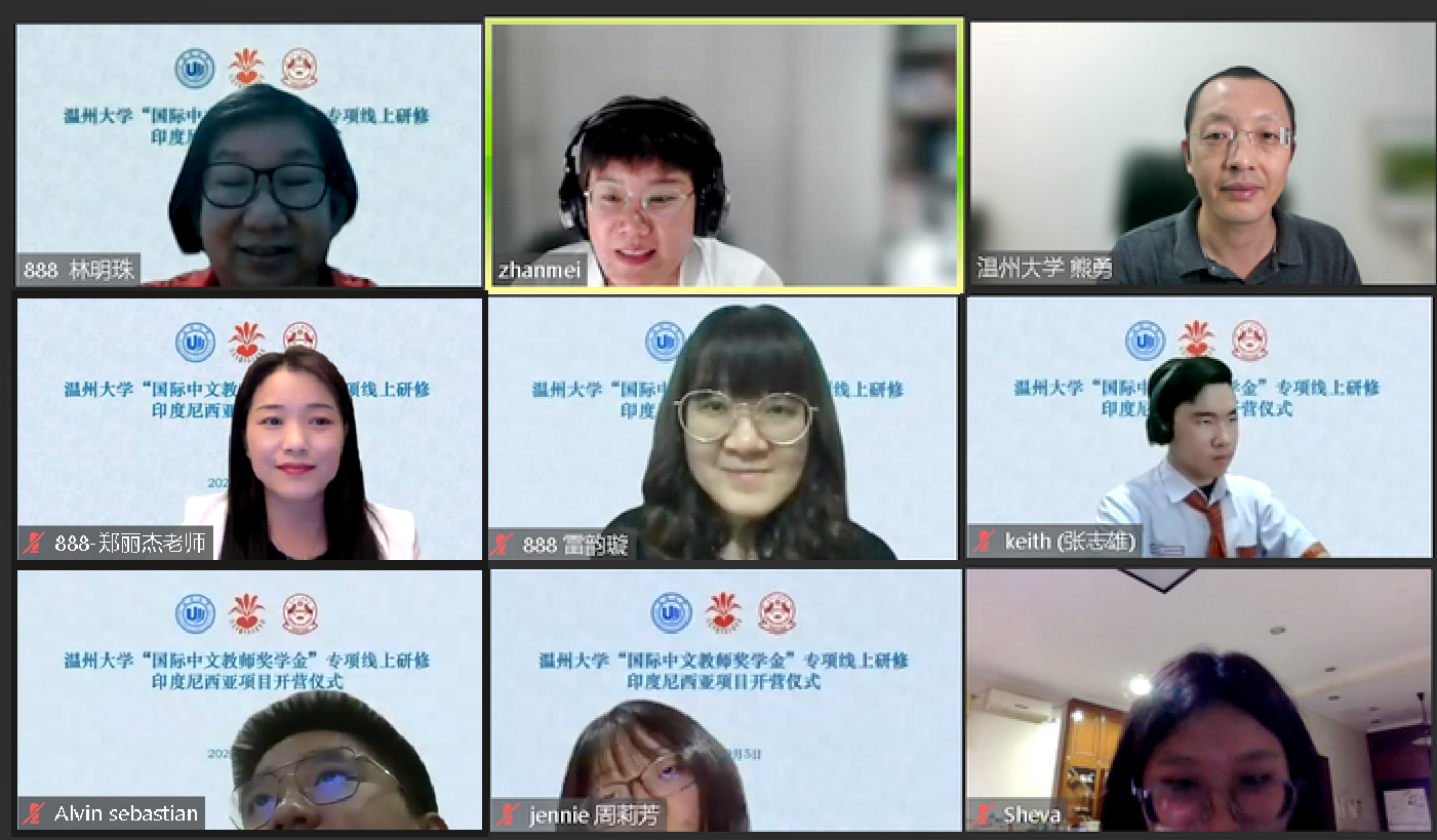 2022年9月5日,温州大学“国际中文教师奖学金”专项线上研修印度尼西亚项目开营仪式在线上隆重举行。印尼华裔中华乐趣学苑主席林明珠、副主席郑丽杰、印尼棉兰南洋之晖学校校长雷韵璇与汉语研修项目全体学员70名印尼中学生参加,我校博彩平台排名