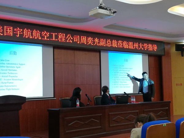 及温州市通用航空沙龙承办的温州大学2017年第九场学术沙龙暨第十期航空学术沙龙“通用航空产业发展”于11月24日下午,在北校区3号楼203报告厅隆重举行。此次学术沙龙的特邀嘉宾为美国宇航航空工程公司周奕光副总裁,在学术沙龙前,举行了简单隆重的聘任仪式,聘任周副总裁为博彩平台排名