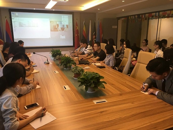 领导、专业负责人有序发言,简明扼要地展示了各自的专业特色、培养重点以及生源要求,同时对招生协作单位SICAS的同仁们提出了建设性的意见,进行了开放性的远程互动。SICAS公司也通报了目前的招生进展和留学生申请者对学校的期望与专业诉求。SICAS公司表示在相对热门的专业中要严把留学生入学质量关,尤其对申请相关专业学生的英语和数学提出明确的标准与要求。