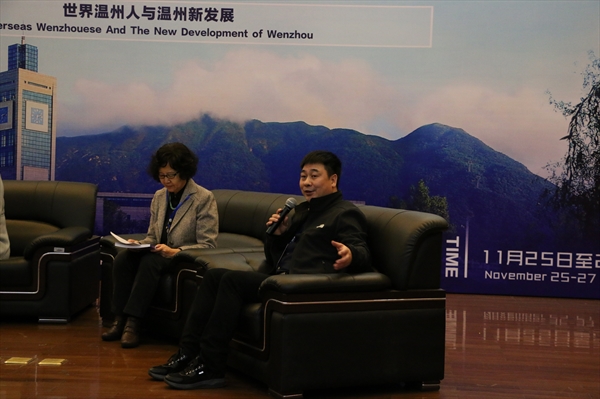 王洪斌博士:如何借助“一带一路”提供重要契机,加快发展创新。温州作为沿海发达地区参与“一带一路”建设,具有很多优势,温商资源就是其中之一。温州近年来实施温商回归工程,为海外温商充分利用国内资源参与“一带一路”建设提供了良好的环境。温商群体和温商人非常具有特点,我用十二个字来总结一下,即“弱联系、强纽带、精组织、大平台”,这个大平台就是温商网络。