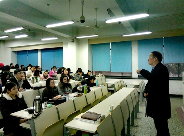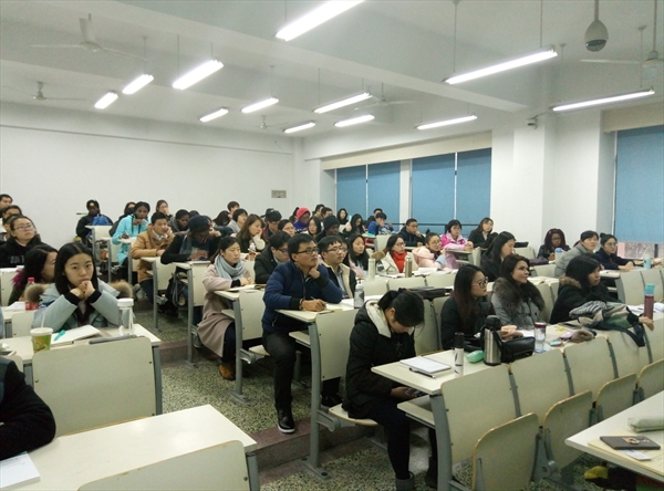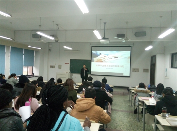 汉语国际教育专业硕士近100位同学,作了《世界华文教育的现状及发展趋势》专题讲座。