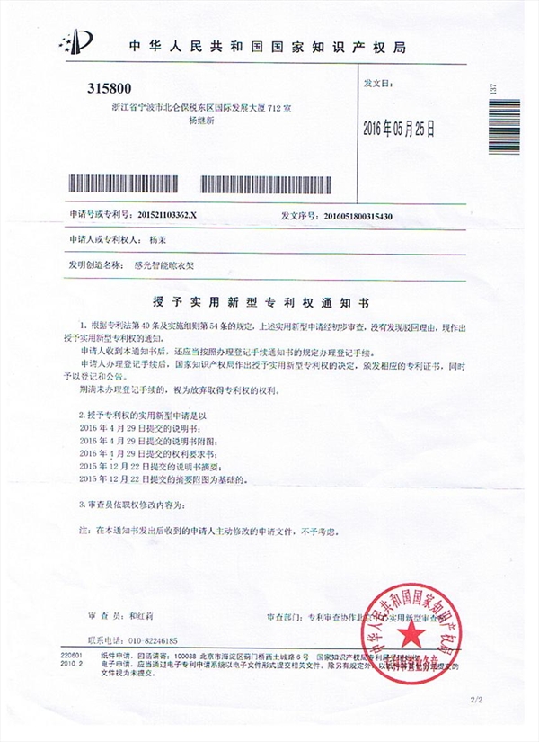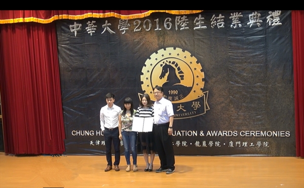 2013级电子信息专业(两岸合作项目)学生杨茉、陈若南和张姚瑶三位同学共同研发了“感光智能晾衣架”,获国家实用性新型技术专利,并在台湾中华大学举行的结业典礼上受表彰。