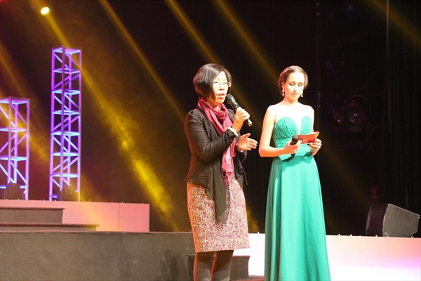 的俄罗斯籍留学生喀秋莎共同主持晚会。
