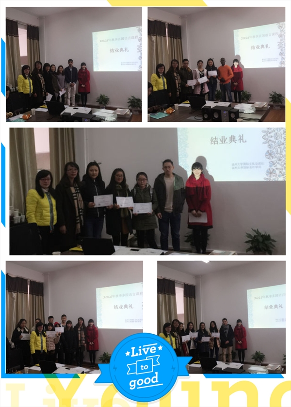 118会议室举行了2015年秋季茶山校区多国语言课程结业典礼。典礼上,参与课程的师生们更好地了解了国际文化交流社和多国语言课程的运行情况,一起分享了学习外语的心得。