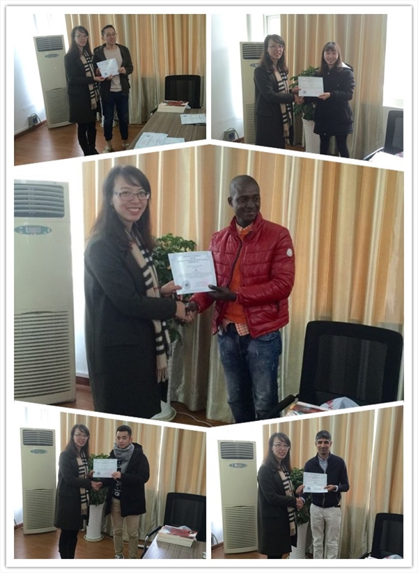 副院长包含丽老师发言,她对授课老师们的教学工作表示了肯定,表达了对老师们感谢。随后意大利、英语、韩语、法语、西班牙语的授课老师分别发言,他们表达了对多国语言课程的感想,比较遗憾的,德语老师与日语老师因公事和个人身体状况未能出席本次结业典礼。学员们也各自交流了参加多国语言课程的感想,用自己学习的语言进行了自我介绍。典礼的最后环节,包含丽副院长向优秀学员授予了结业证书,赠送了奖品,给每一位老师颁发了感谢状。