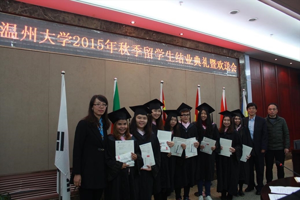 教师代表金碧老师回顾了留学生们这一年以来所取得的点点滴滴的进步,鼓励他们带着母校美好的祝愿,继续坚持学习汉语,在汉语学习的过程中感受更多汉语语言的魅力和中国文化的底蕴。即将学成归国的泰国东方大学留学生PHETNOK CHALISA (彭丽莎)代表全体结业学生用朴实的话语表达了对温州大学真挚的情感:“虽然温州的天气很冷,但是学校的老师和同学让我感受到了家的温暖,这里是我的第二故乡,这段求学时光是我的宝贵经历,感谢温州大学!”