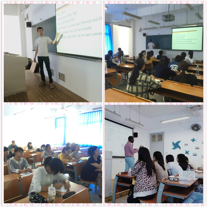 在第一堂课中,外教和留学生老师们的幽默、友好给学员们留下了深刻的印象,学员们也积极参与课堂教学,回答老师们的各种问题。在各国文化的碰撞中,师生们热切交流,交换学习的心得,为第一堂课画上了圆满的句号。