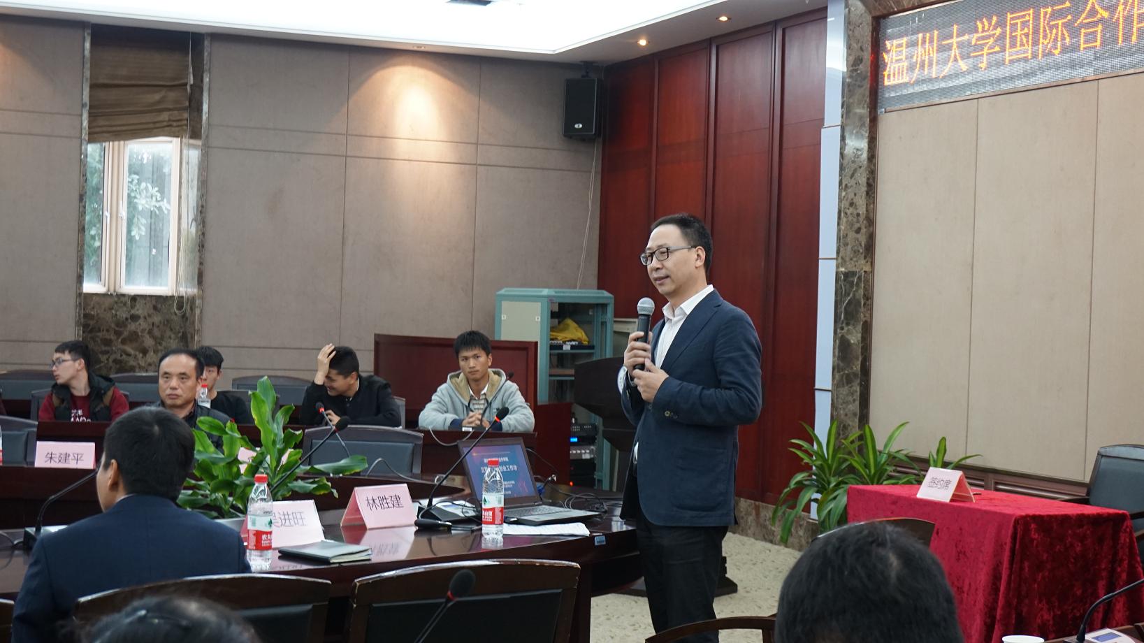 4月7日下午,首期“互联网金融创业工作坊”开幕仪式在温州大学岩松堂白鹿厅举行,特别邀请了兴业银行温州分行业务部兼营销管理部总经理吴进旺,温州金州电商产业园董事长林胜建等企事业代表出席。温州大学国际合作博彩平台排名