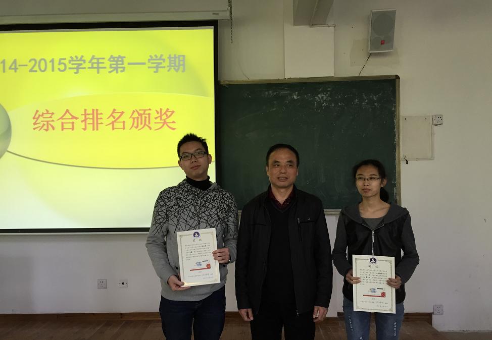图为陈军副院长为14级综合排名第一的学生颁奖