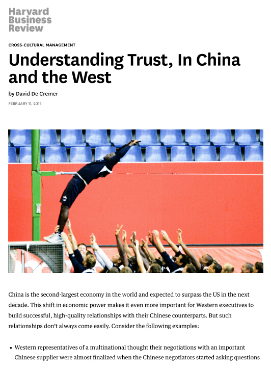客座教授David De Cremer,以温州大学为第二作者单位在顶级期刊《哈佛商业评论》上发表文章《Understanding Trust, In China and the West》。