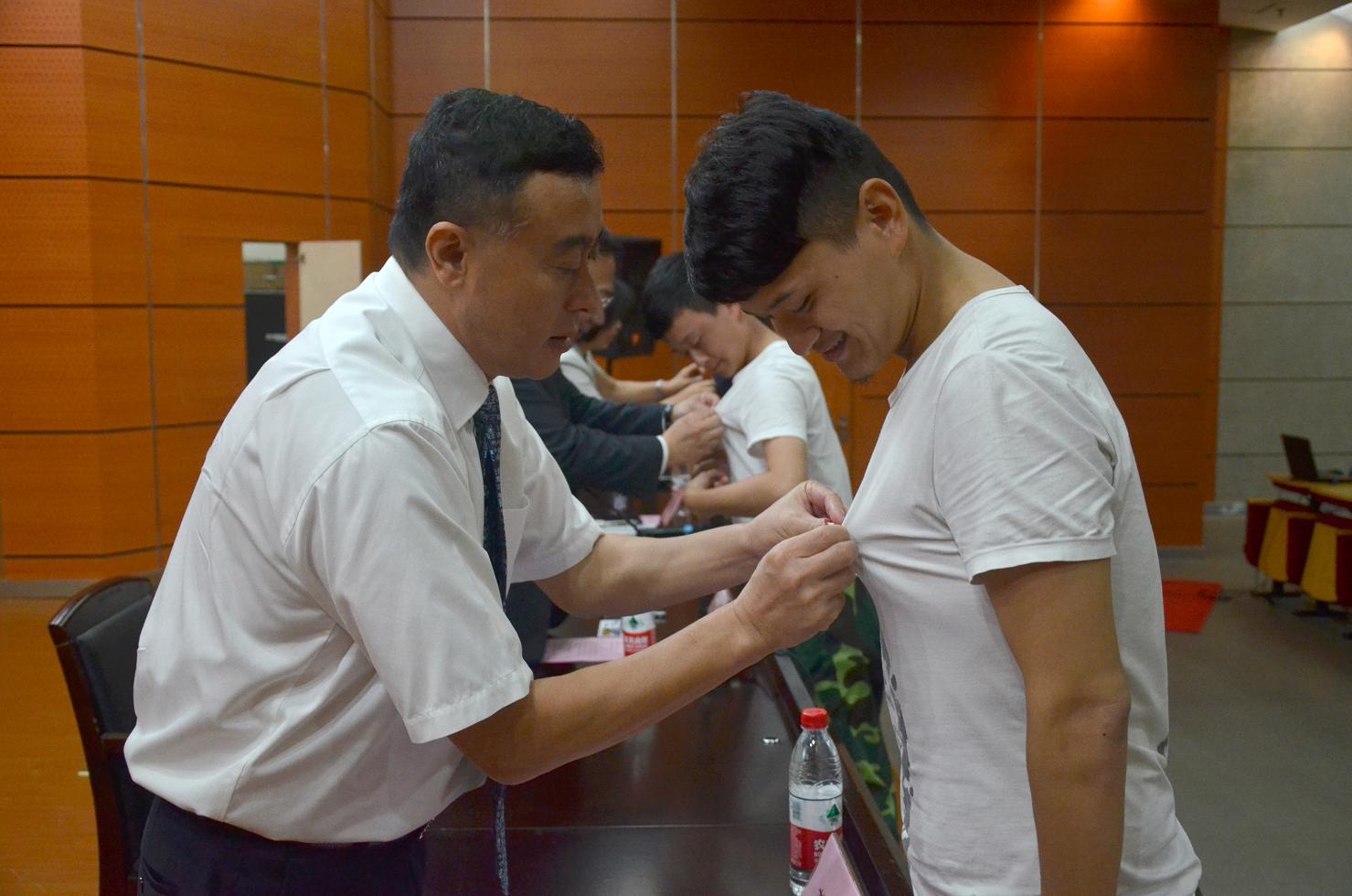最后,参加典礼的领导嘉宾还为新生代表佩戴了温州大学校徽,典礼在气势磅礴的校歌中结束。