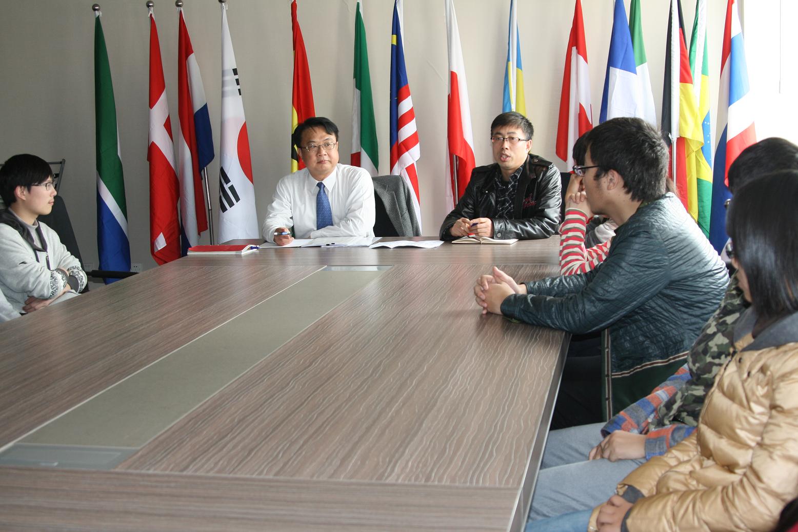 游坤明博士一行还与两岸合作项目学生召开了座谈会,会上,同学们积极提问,互动热烈,气氛活跃。游坤明就更好地学习专业课程、专业英语等作了分享,就同学们所关心的问题,如课程安排、赴台学习、Oracle SQL证照考试等事宜安排作了说明。最后,他还就同学们感兴趣的ACM程序设计大赛等作了简单介绍,同时表示中华大学作为ACM亚洲区程序设计大赛的曾经举办单位,会为有兴趣参赛的同学提供最大的支持。
