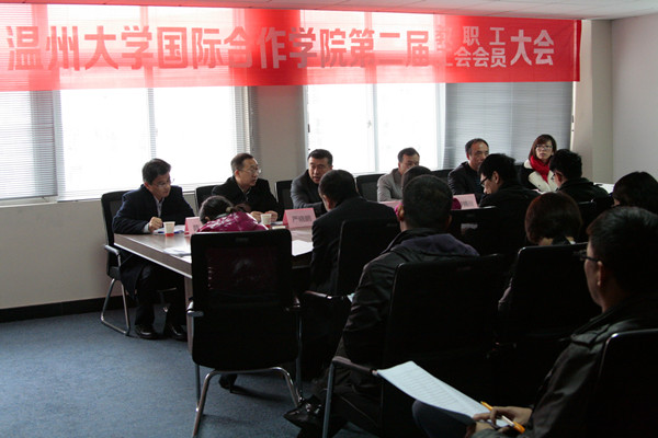 第二届教职工暨工会会员大会在专家楼304会议室隆重举行。温州大学副校长薛伟、校工会常务副主席钟锦川到会祝贺。