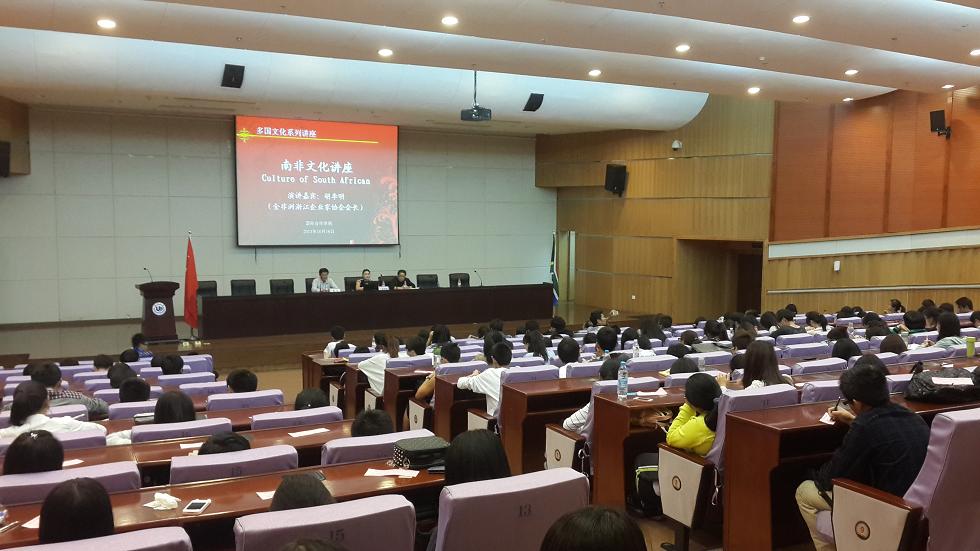 胡李明教授在热烈的掌声中开始了南非文化讲座,讲座围绕南非风土人情,温州人的南非创业史展开。其中最感人的部分是胡教授自己在南非的创业经历与体验,他用朴实的话语娓娓的道出光环背后的泪水与付出,让在场的同学们切身体验温州人“敢为人先”的创业精神。最后胡教授还为同学们带来了一些在南非实习、就业、创业的有效资讯,让在场的大学生们不仅领略了南非的风土人情,进一步了解了企业家创业的艰辛,同时还得到了很多实习、就业、创业的咨讯,让大家颇为受益。