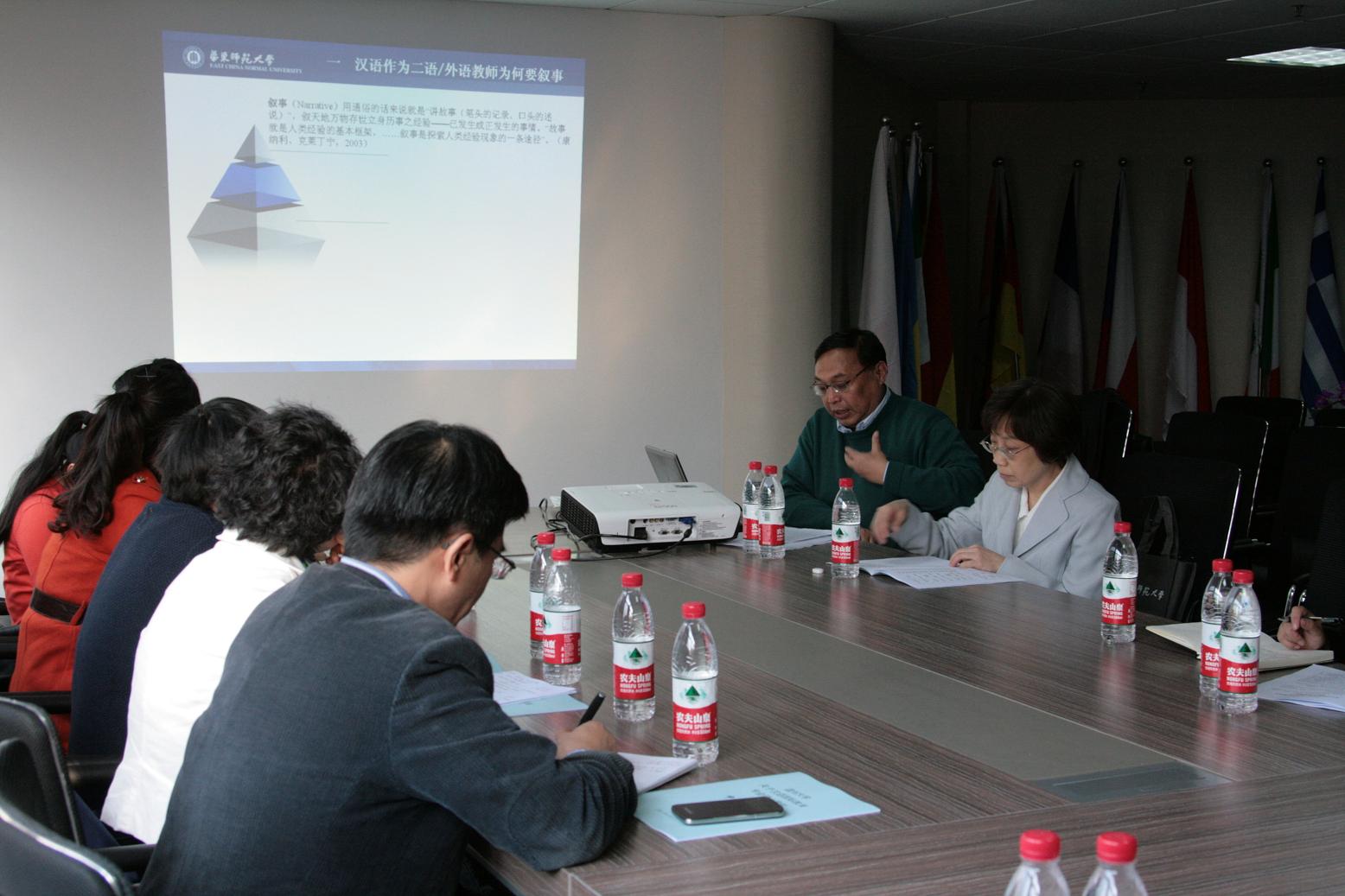 徐子亮教授作了题为“对外汉语教学法:上海高校精品课程建设”的讲座。主要介绍了作为对外汉语专业本科必修课的“对外汉语教学法”精品课程建设的过程,以及在如何改进教学方法、选编教材、推动学生科研等方面采取的措施,并展示了他们已经取得的成果。该讲座对我校汉语国际教育专业的课程建设颇有启发和借鉴意义。