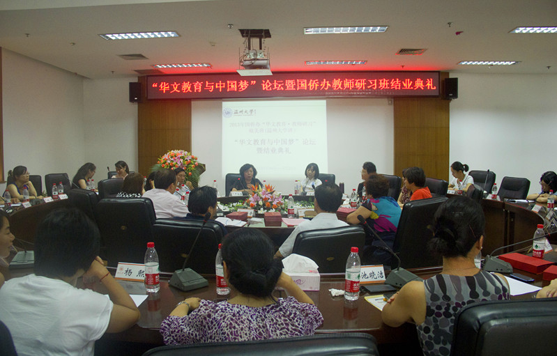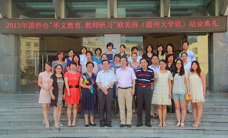 7月24日下午,温州大学在茶山南校区岩松堂展示厅隆重举行“华文教育与中国梦”论坛暨2013年“华文教育•教师研习”欧美班结业典礼。浙江省人民政府侨务办公室副主任徐高春,文宣处处长王云奇,温州市侨办副主任许捷,党组成员、文宣处处长叶斌斌,温州大学国际合作博彩平台排名