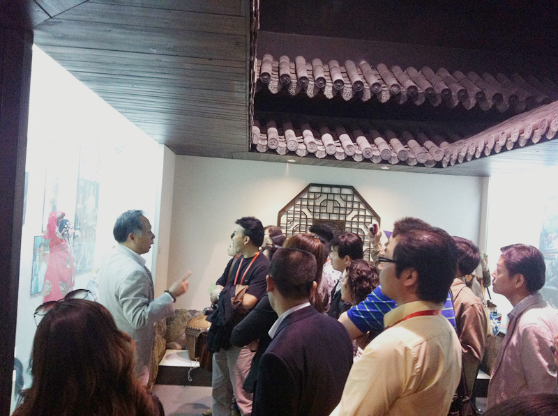严晓鹏院长、朱建平书记和陈军副院长及其他相关老师参加了座谈会,与会各位就中外高校文化交流合作、华人华侨子女教育、海外华文学校教师培训等议题展开了热烈的讨论。之后,观摩团一行来到温州大学发绣馆,近距离接触发绣这一温州著名的特色传统工艺,发绣馆的魏乐文老师为来宾们详细讲解了发绣的发展历史,介绍了作为国宾礼的精美发绣作品。在随后参观的温州民俗博物馆,有“民间工艺美术家”之称的赖施虬馆长亲自担当讲解员,为来宾们生动展现了温州的民俗文化和民间艺术。