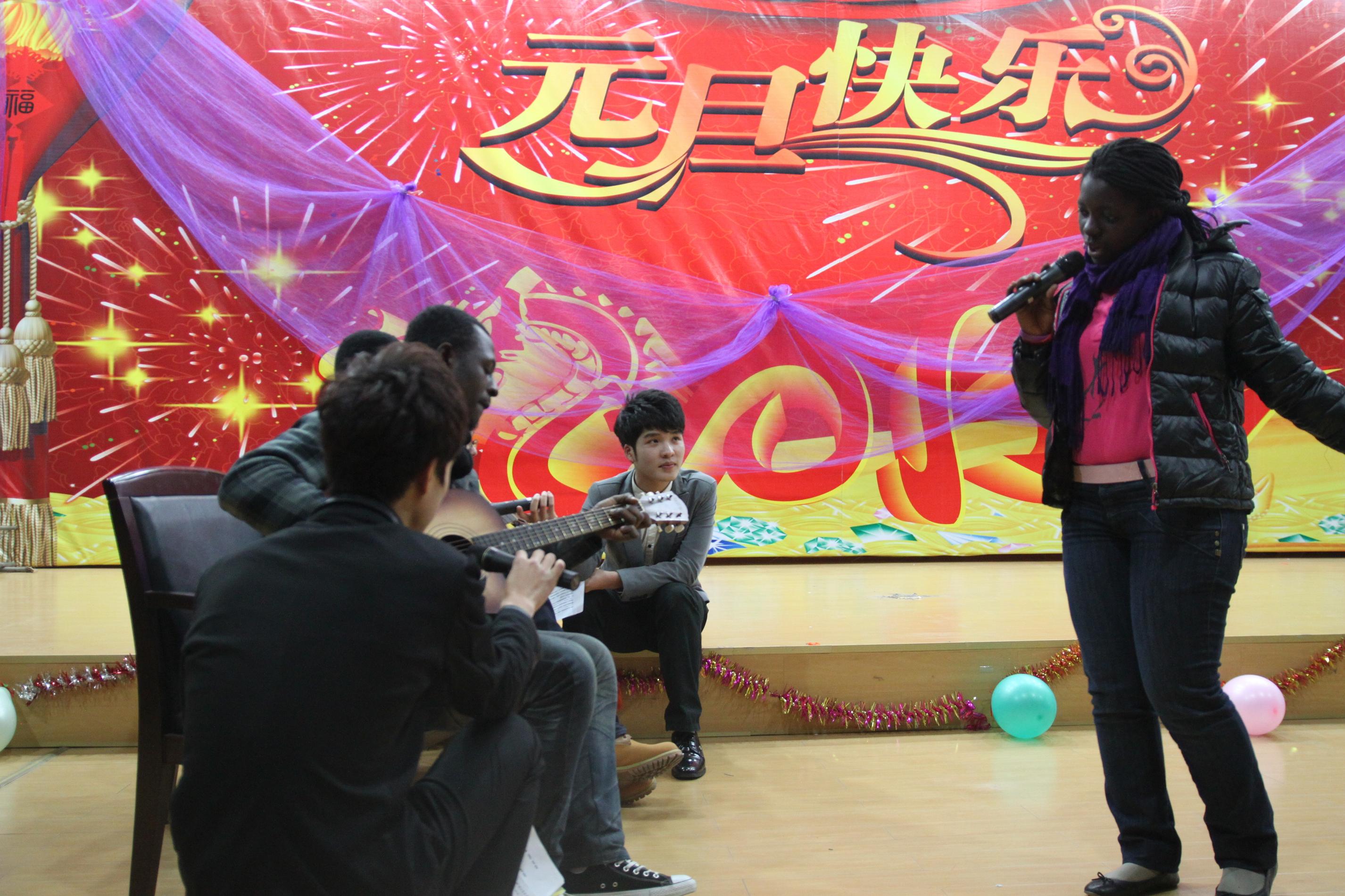 同学着实感受到了艺术的魅力;外教Crumly的一首《This land is your land》以及加纳留学生自弹自唱的《Happy New Year》将气氛带向高潮。