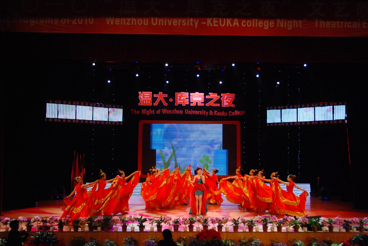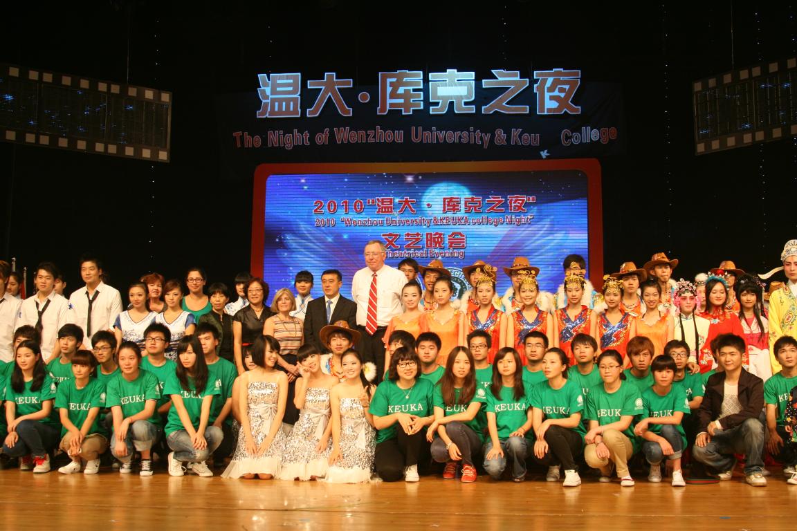 10月22日晚6:30在温州大学茶山校区大学生活动中心演艺厅隆重举行了“2010温大·库克之夜文艺晚会”,温州大学副校长薛伟先生、库克大学董事长Melissa Brown博士、库克大学校长Joseph Burke博士、库克大学中国校区行政校长黄天中博士、一千多名温州大学师生参加了本次活动。