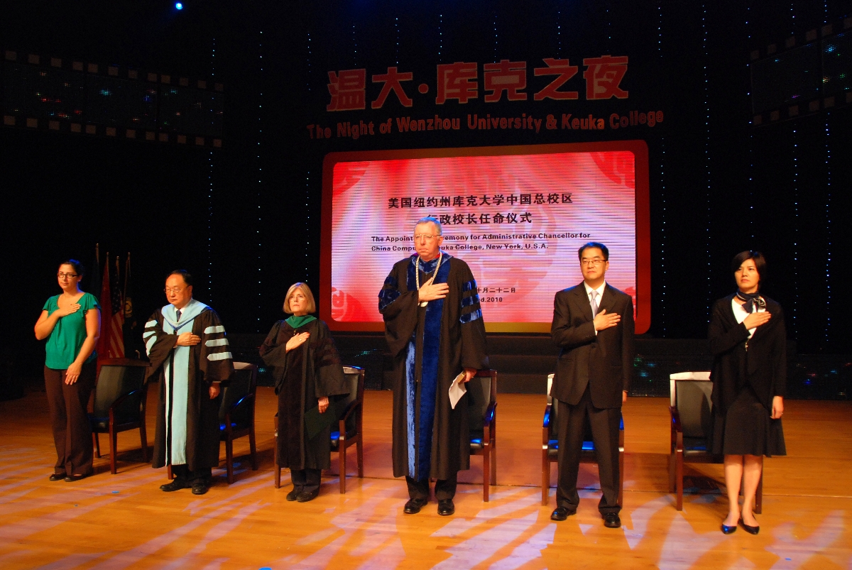 与美国库克大学签订合作协议;2007年,温州大学与美国库克大学签订合作协议。一届又一届的毕业生们现在广布世界各地,在通过本次晚会的视频,我们看到了他们今天的成就。与此同时,他们更是怀着一颗感恩的心,祝福温大,祝福库克,预祝两项合作项目越办越好。结束节目男生双重唱《怒放的生命》和群舞《情路满天》,寓意中美库克项目越办越好,两校友谊天长地久。雄关漫道真如铁,而今迈步从头越,为了更辉煌的明天,我们又将朝向胜利出发!