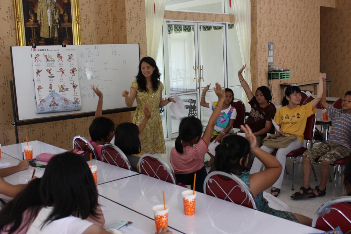 派出的汉语教师张丽丽和吴海蓉承担了本次夏令营的所有教学工作。老师给小学员们起了好听的中文名字,针对汉字书写存在的笔画笔顺问题,专门加强指导,进行规范练习,当学员们一笔一划地写下自己的名字和 “福”、“泰国”等汉字时,脸上无不洋溢着喜悦满足的神情,兴奋地展示自己的学习成果,拍照留念。在夏令营活动中,学员们新学了大量词汇,提高了汉语会话能力,能用中文进行简单交流。通过学唱中文歌曲、跳扇子舞、扭秧歌、学剪纸、书法、功夫、中国结等内容,不仅打下了汉语学习的良好基础,还提高了对汉语和中国文化的感性认识。周末孔院组织的“三国城”和“淡浮院”参观活动,使学员们感受到了更多的中国文化元素,加深了对中国及中国文化的认识和了解。