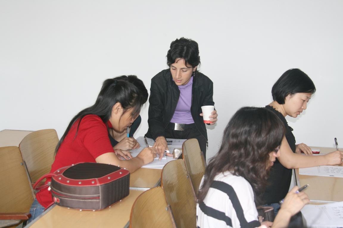2010年5月8日早上九点,在博彩平台排名 路校区1号楼504教室,由博彩平台排名 语言培训超市开办的第二期免费意大利语培训周末班开课。培训班吸引了校内外多位学员前来学习。意大利语教师茱丽叶来自意大利佛罗伦萨大学,会说一口流利的中文、英文和法文。第一堂课她首先给每位学员起了一个地道的意大利名字,好听又好记,大家都非常喜欢。茱丽叶老师结合中意双语教学,从字母发音,最简单的数字、问候、文化元素等入手,带领学员们进入意大利语的世界。